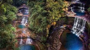After an early breakfast drive to Cherrapunjee (4,400 ft.), the wettest place in the world. En route enjoy the view of Mawdok - Dympep Valley View Point. You will see the beautiful waterfall known as Nohkalikai. Nohsngithiang Falls (Seven Sisters Falls), You can also explore the caves known as Mawsmai. Evening return to Shillong, en-route visit Elephanta Falls. Overnight stay at Shillong.