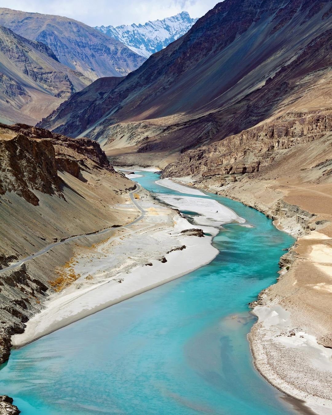 Zanskar River is shiny blue, on the other hand, the Indus looks a little green. Zanskar meets Indus in Nimmu Valley from the northeast. The thing that makes this place interesting is the colors of the rivers. Zanskar River is fluorescent blue and Indus looks a little green. They both meet in Nimmu Valley.